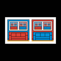 2 SQUARES: RED SOFA BLUE SOFA by Bob Kessel